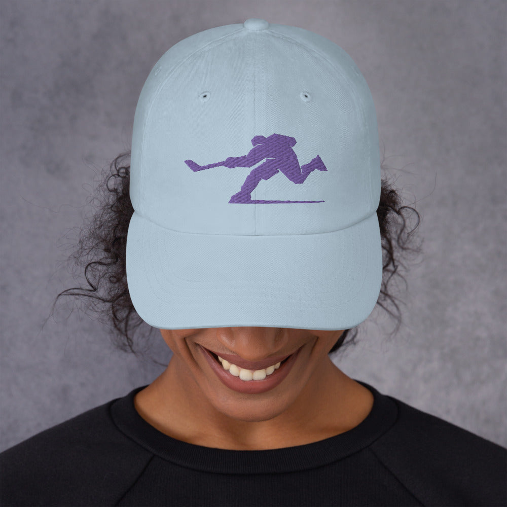 Hockey shooter hat. This one's got a low profile with an adjustable strap and curved visor.